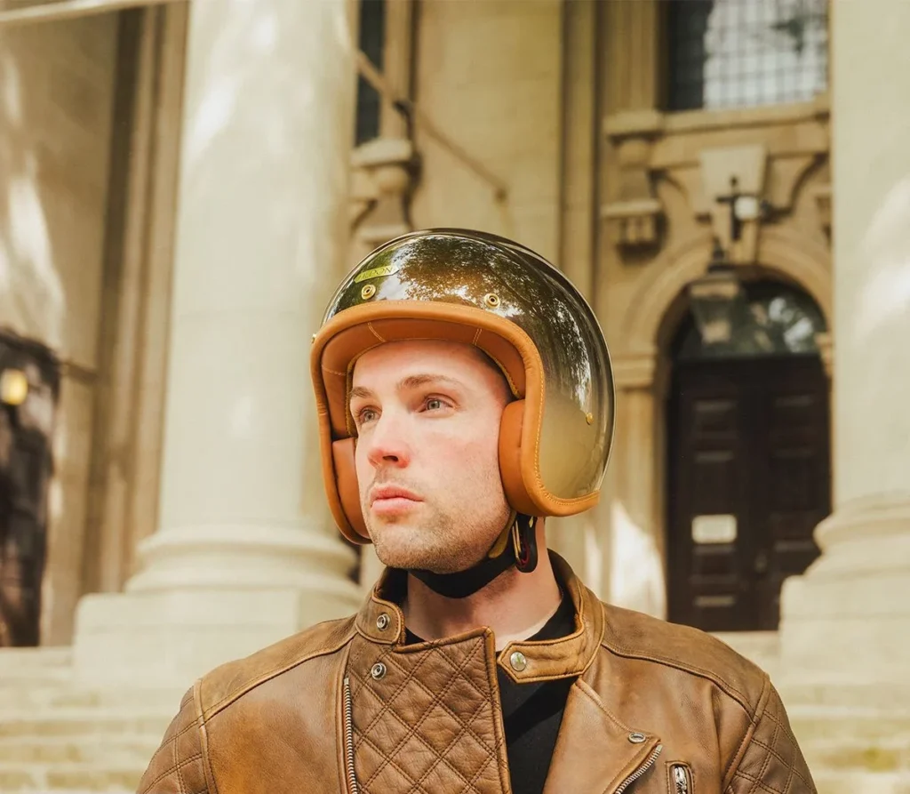 – Chi tiết : Lớp lót kháng khuẩn có thể tháo rời và giặt được. Dây quai da kết hợp khóa Double D-ring an toàn, kèm khuy bấm đồng cổ điển. Mũ đạt tiêu chuẩn an toàn ECE 22.05, có thể sử dụng hợp pháp tại châu Âu và nhiều quốc gia khác.