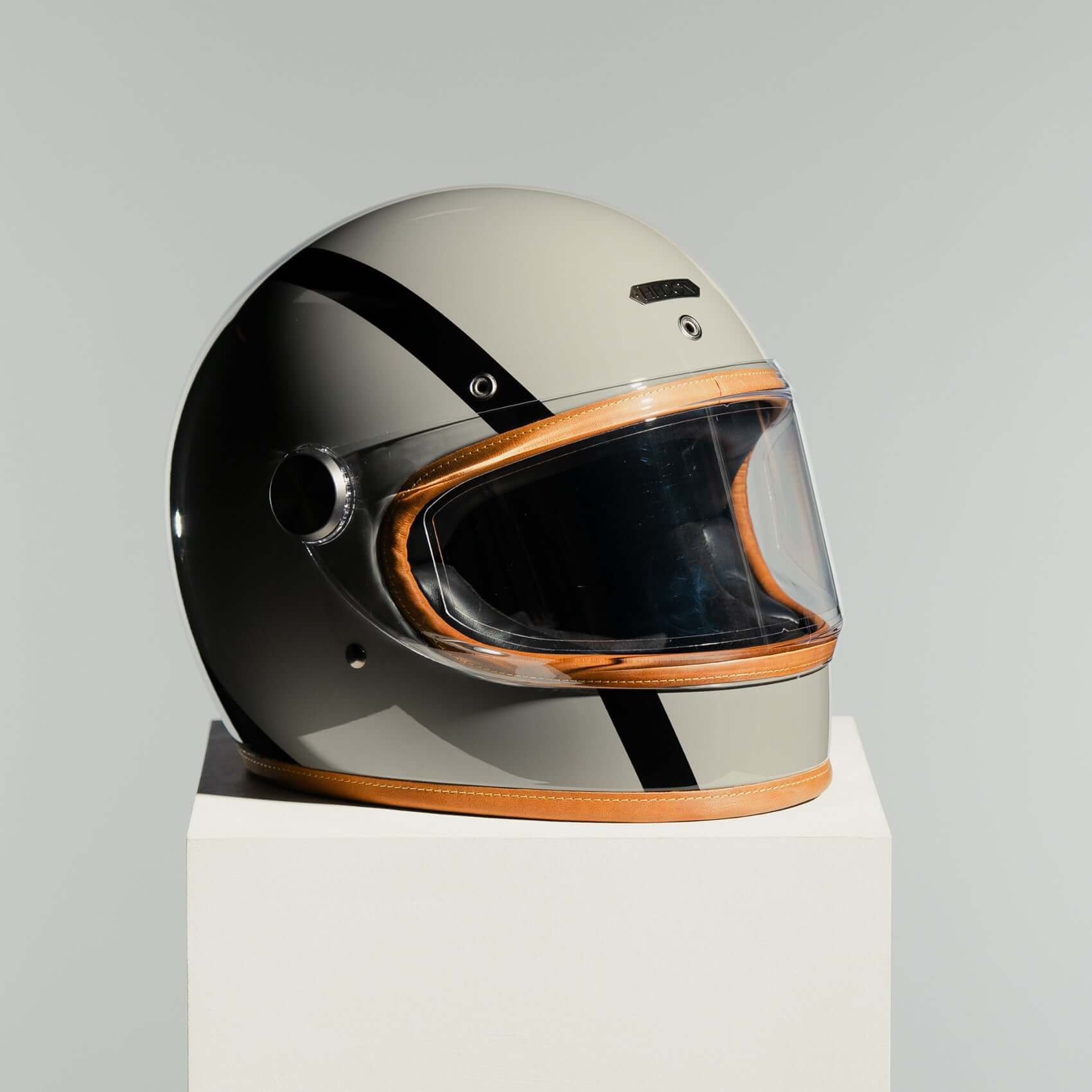 - Warm light grey with black Xtasy masked stripes painted shell using automotive paints, gloss finish